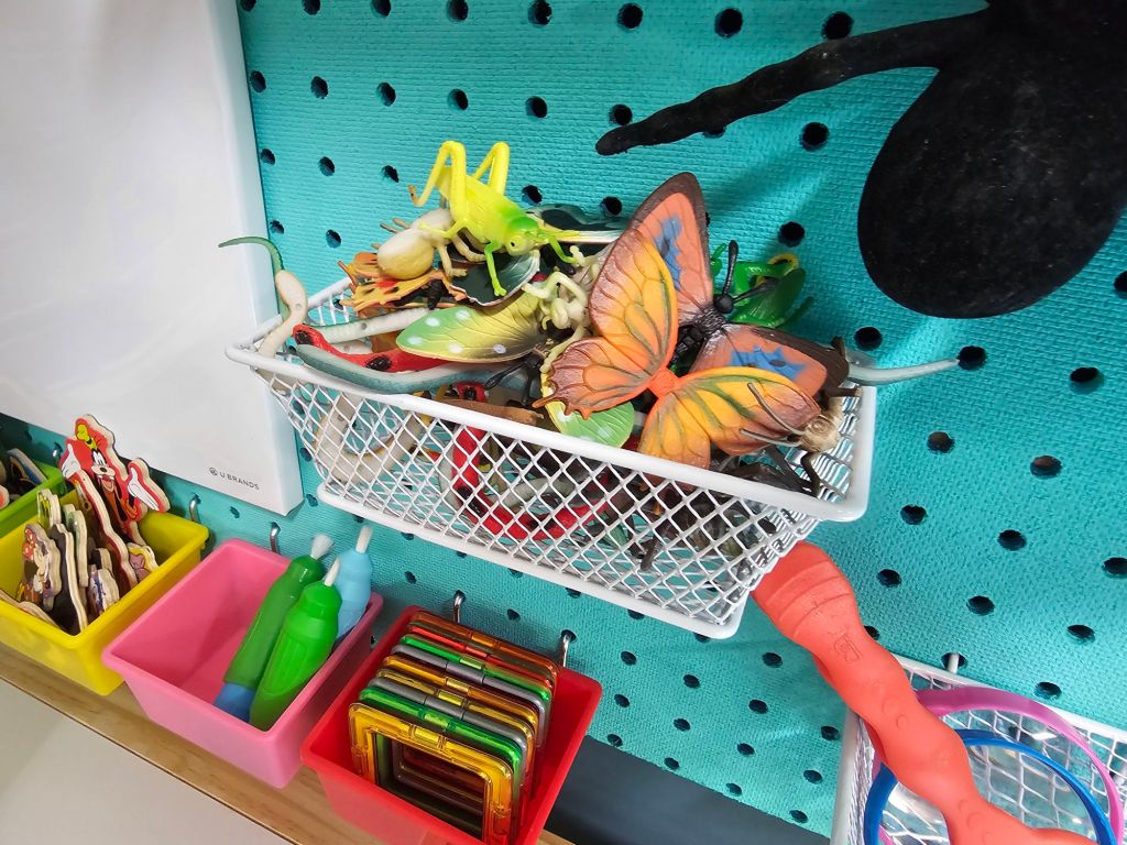 - Rainbow pegboard attachements $26.99: 20 Pack Pegboard Cups Amazon